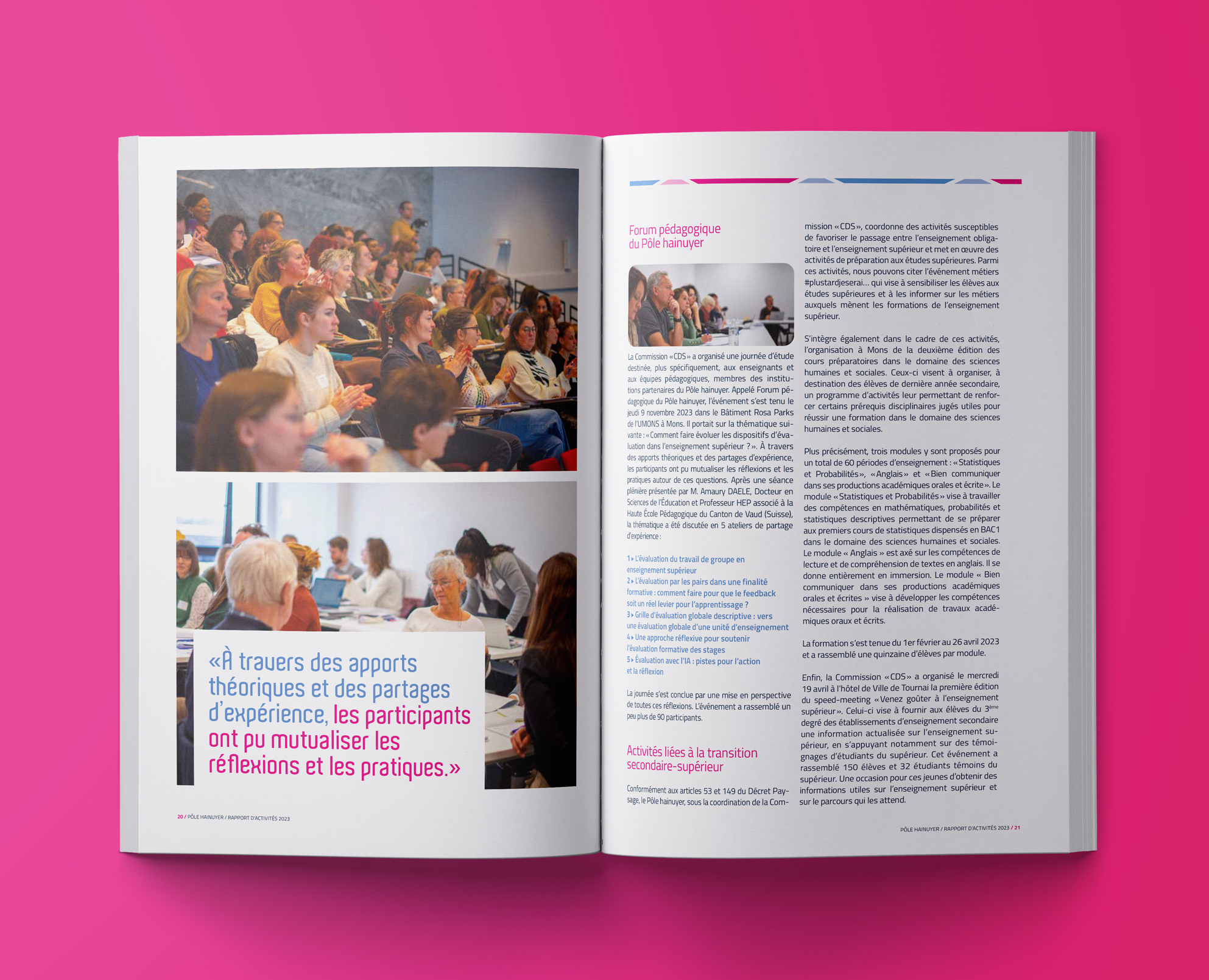 Dans le cadre de la valorisation de ses missions et de ses projets, le Pôle hainuyer nous a confié la création graphique de son rapport d’activité.